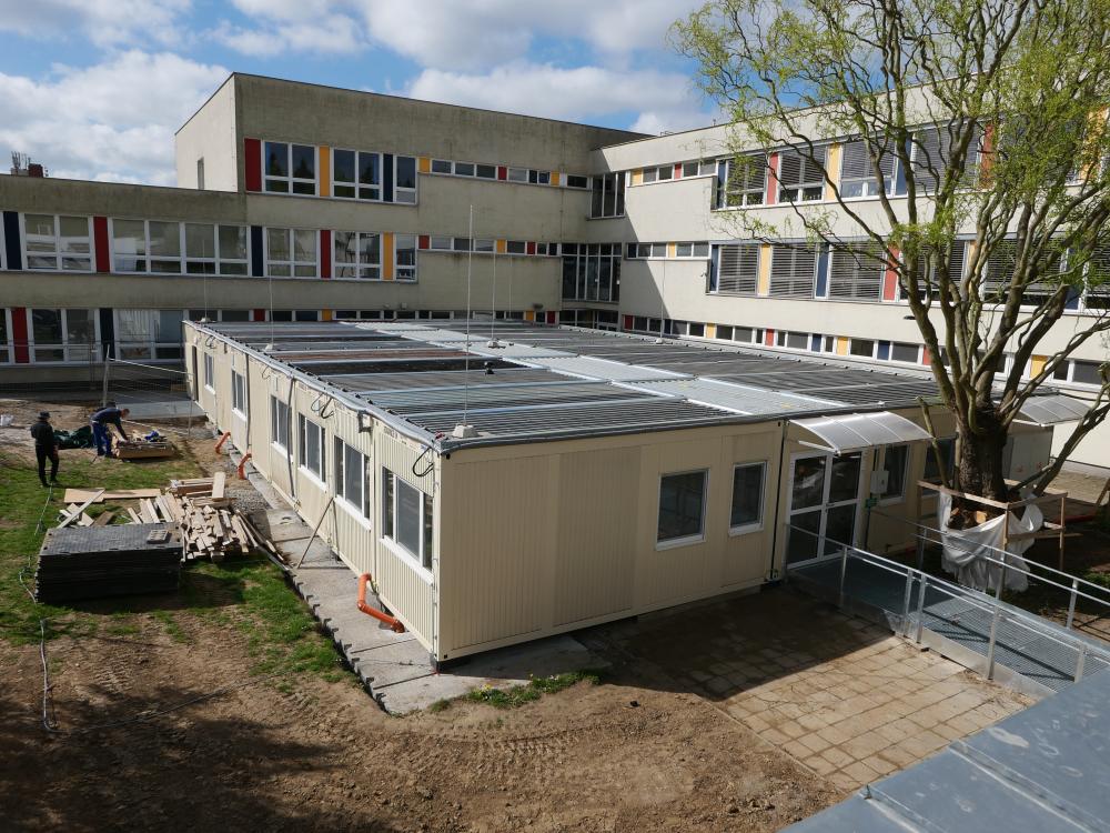 Během projektu bylo nutné zajistit náhradní stravování žáků základní školy. Byla vybudána náhradní kontejnerová kuchyně a jídelna na dvoře školy, celkem z 25 kontejnerů.