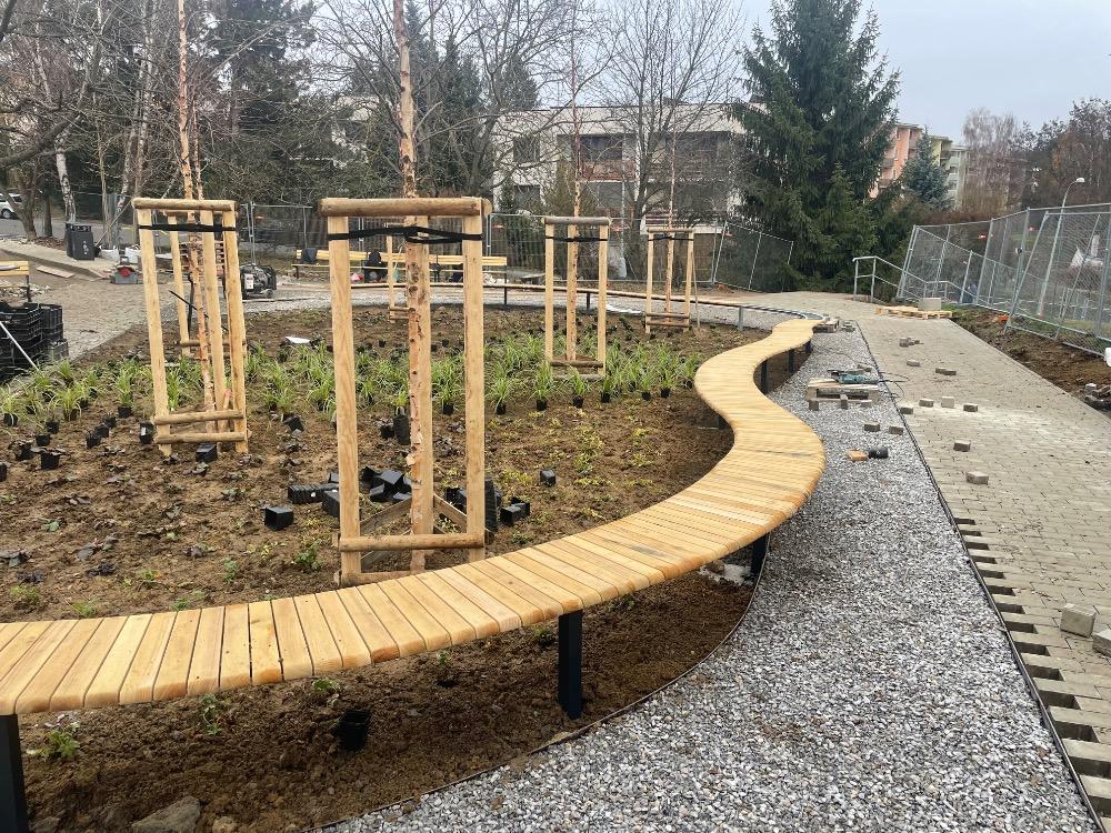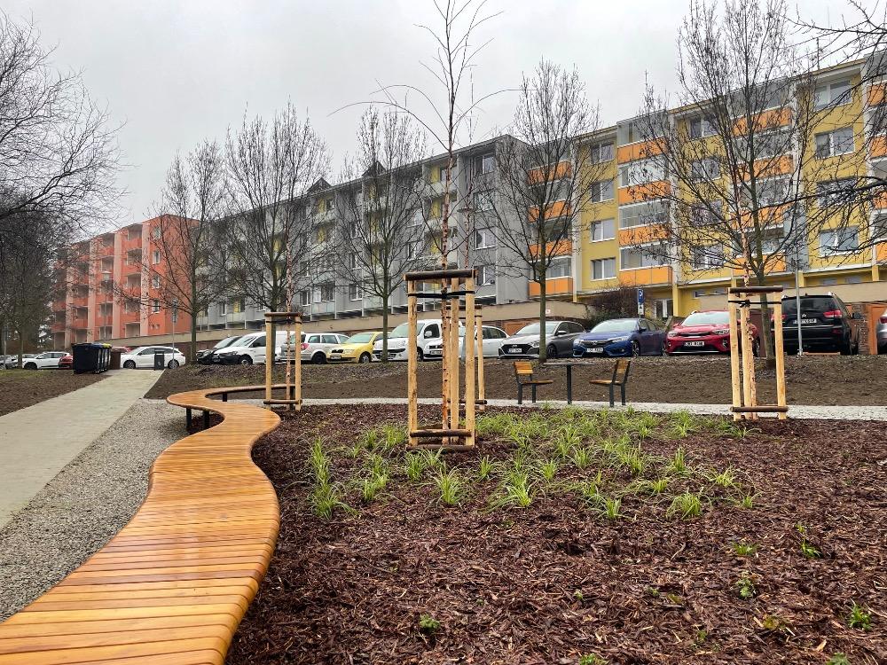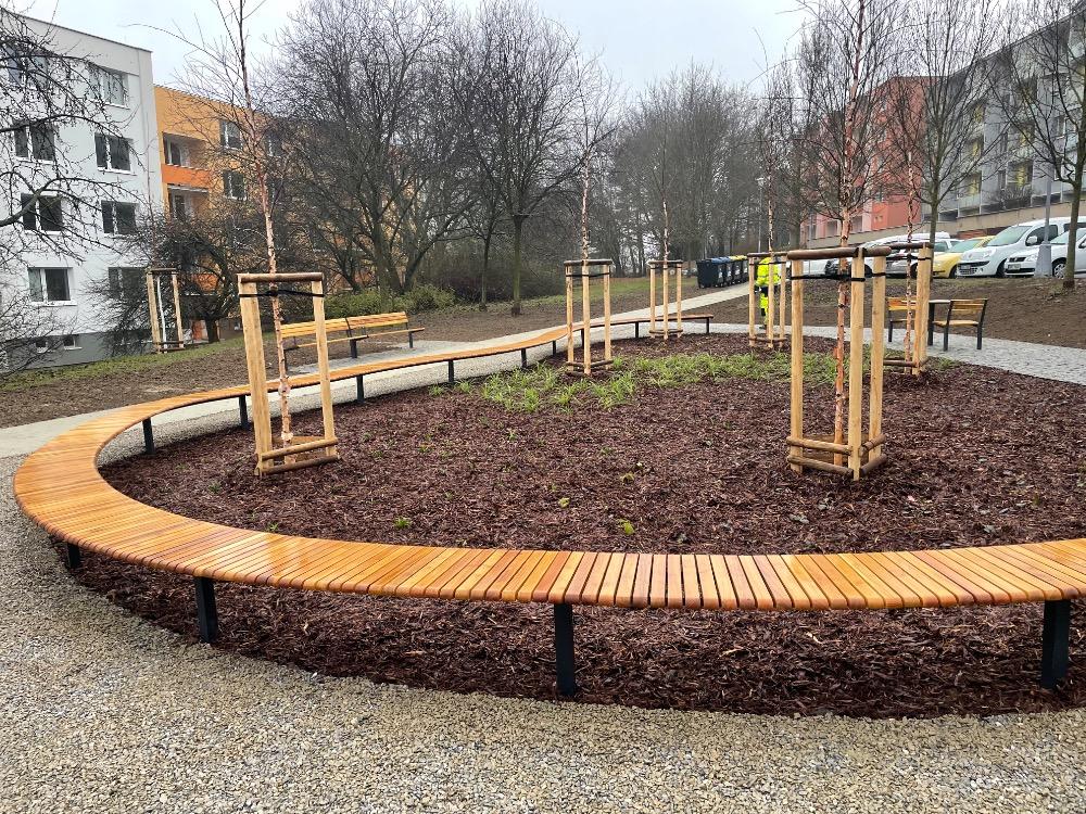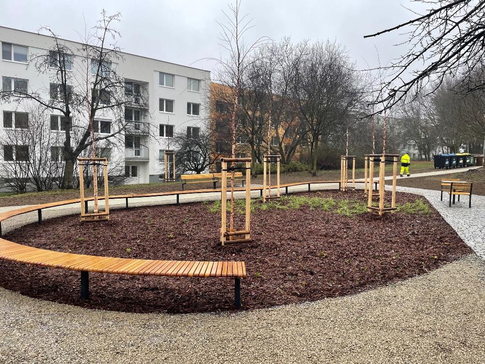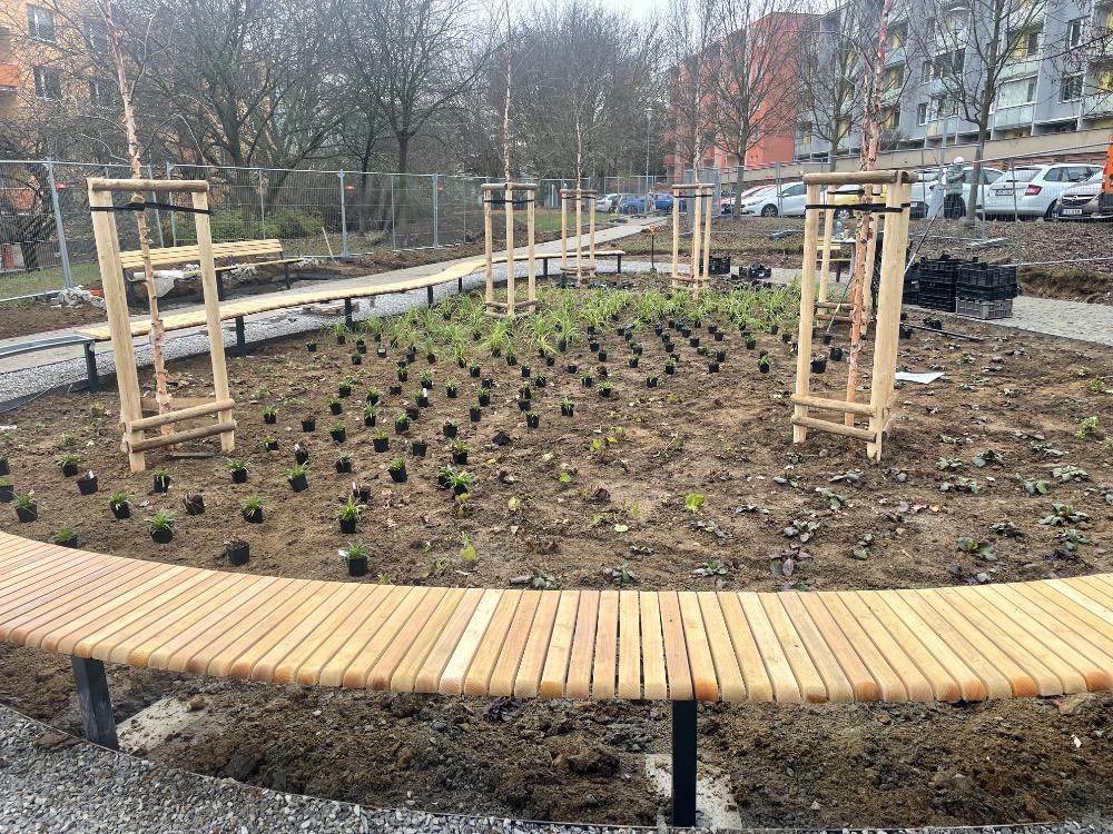 Modrozelený ostrov je dalším z našich projektů úprav veřejného prostranství, tentokrát mezi ulicemi Urxova a Jožky Jabůrkové.