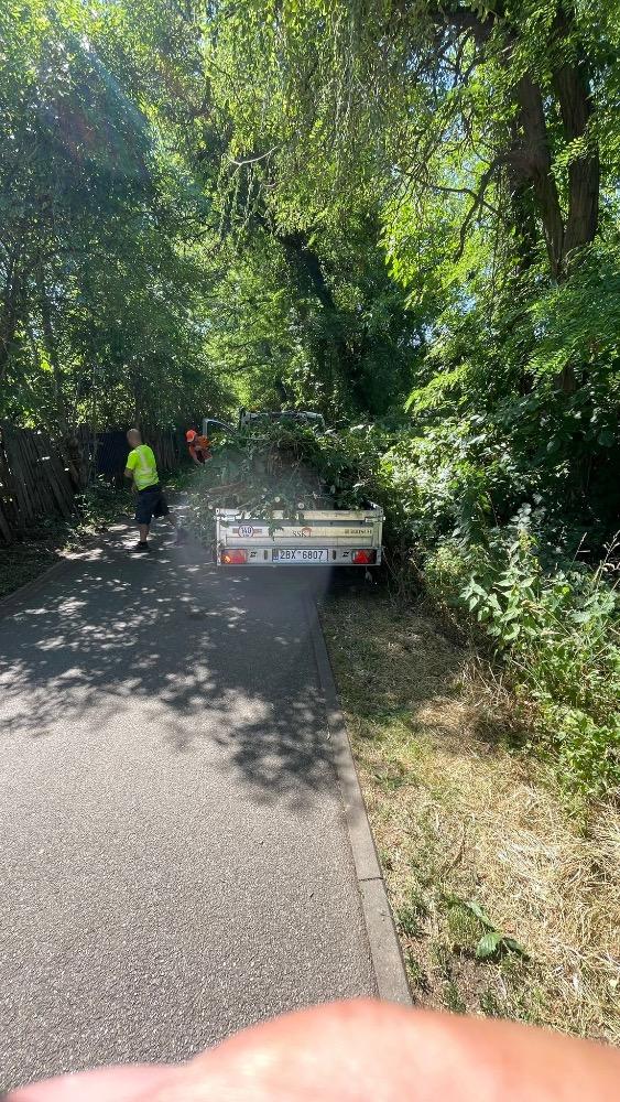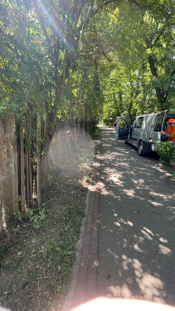 Začali jsme s ořezem dřevin zasahujících do cyklostezky Kníničská, která vede podél řeky Svratky. Tyto práce provádí pracovníci údržby MČ Brno-Komín. Vzniklá dřevní hmota je následně zpracována drtičem a využita jako mulč pro veřejné záhony.