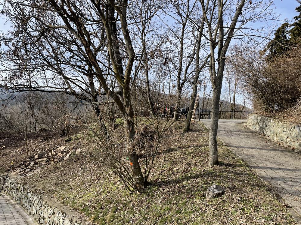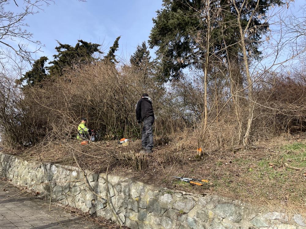 V březnu letošního roku byly započaty omlazující práce keřového patra parku Ruský vrch. Dále byly důkladně vyčištěny veškeré plochy okolo památníku vojáků Rudé armády. Následně byly obnoveny výhledy do naší městské části a na vodní hladinu řeky Svratky. Pokračovat bude asanace svahu, který byl vyhodnocen statiky jako nevyhovující. Naši zahradníci zpracují odstraněnou biomasa, která se využije k mulčování záhonů. Poté budou vyčištěny odtokové žlaby v chodnících.