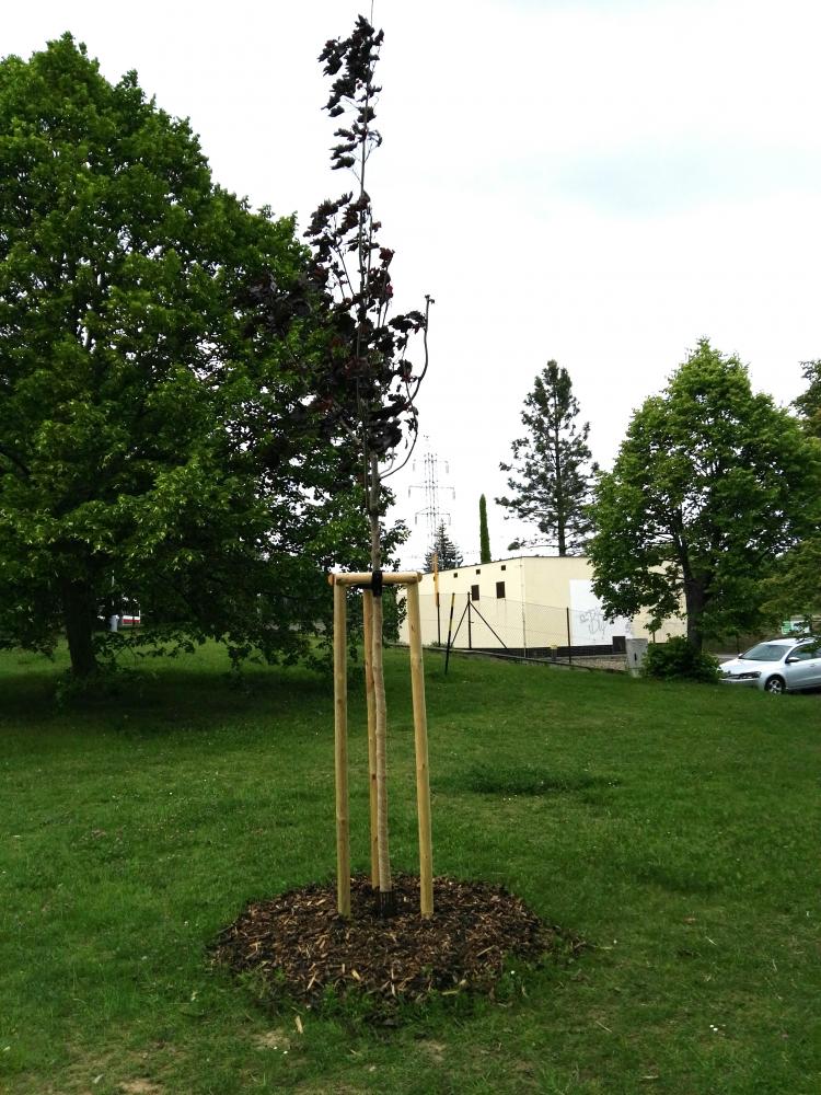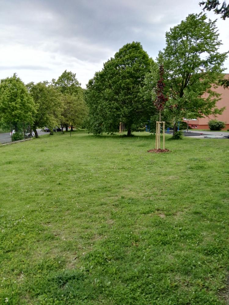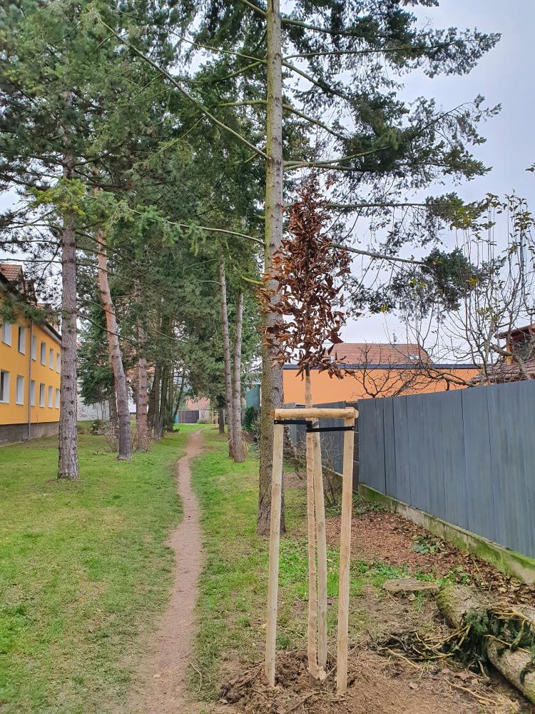 Náhradní výsadba za vykácené stromy na ulici Podveská (2020)