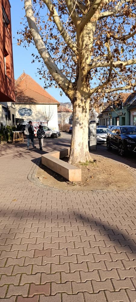 Akátové lavičky pod platanem na ul. Svratecká (2024)