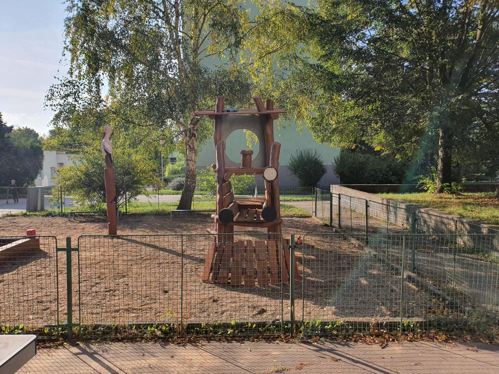 Hřiště bylo odborně opraveno v souladu s normou ČSN – EN 1176, demontáž, přebroušení, zatmelení a repas herních soustav a vybavení hřiště včetně výměny vadných, shnilých dílů a souvisejícího materiálu, nátěr nezávadnými vysoce odolnými oleji a ekologickými barvami, doplnění šroubů, krytek atd. Součástí opravy byla i instalace nového herního prvku „Mašinka“, a přesun péráku na dětské hřiště Vrbenského. Dopadové plochy byly zkypřeny. Veškerý dřevěný materiál je z akátového dřeva.