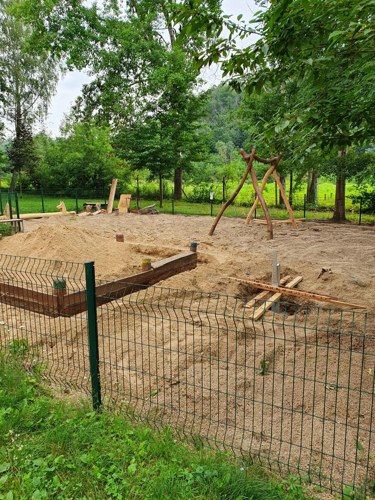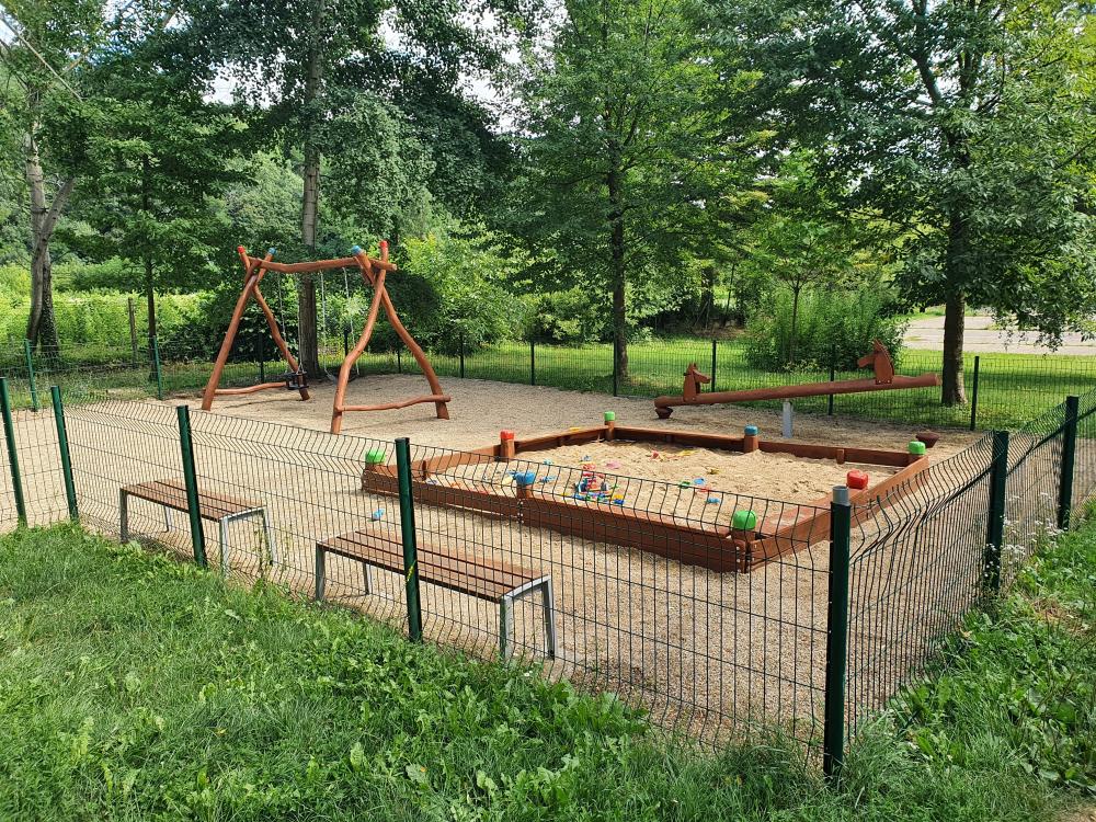 Hřiště bylo odborně opraveno v souladu s normou ČSN-EN 1176, demontáž, přebroušení, zatmelení a repas herních soustav a vybavení hřiště včetně výměny vadných, shnilých dílů a souvisejícího materiálu, nátěr nezávadnými vysoce odolnými oleji a ekologickými barvami, doplnění šroubů, krytek atd. Součástí opravy byla výměna dvou houpačkových sedátek a instalace nové akátové vahadlové houpačky. Dopadové plochy byly zkypřeny.