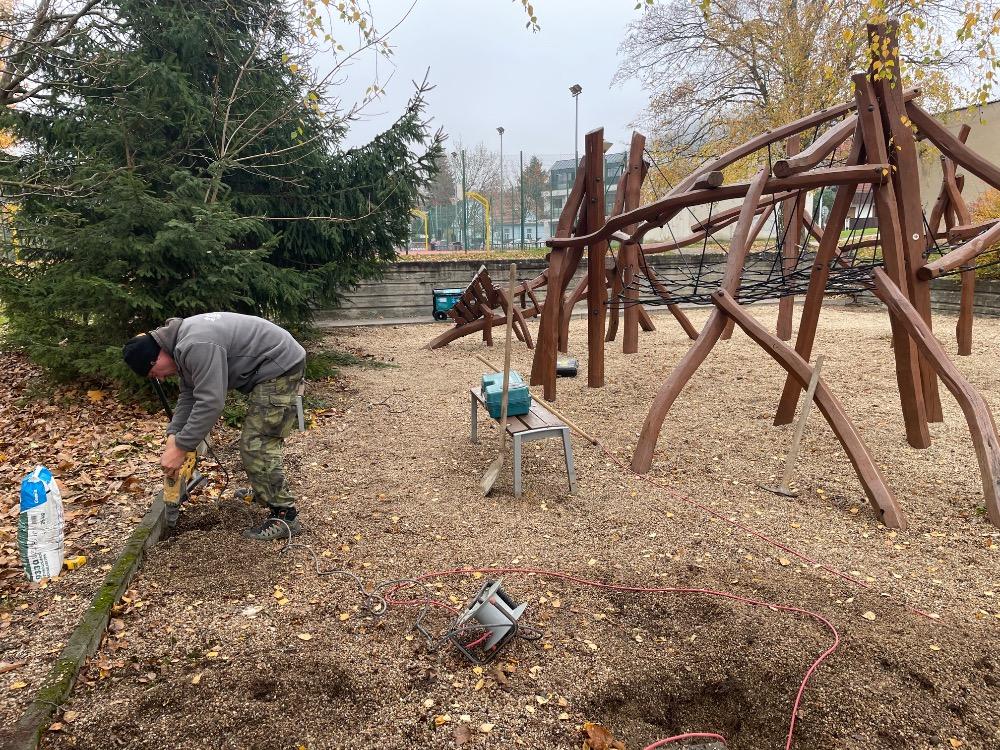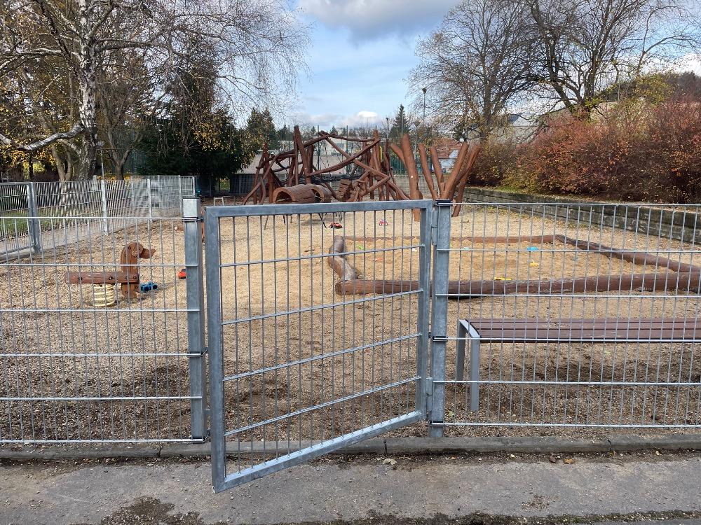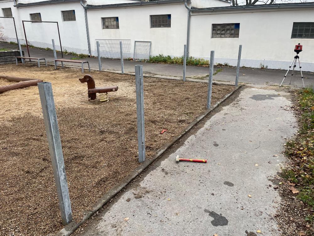 Městká část přistoupila k posouzení původního nevyhovujícího oplocení. Jednalo se o jednoduché plotové dílce typu Pilofor, jež se ukázaly pod zátěží dětských radovánek jako nevyhovující. Po vyhodnocení stavu a zvoleného typu původního oplocení jsme přistoupili k realizaci nového oplocení ze zesílených plotových dílců a branek se samozavíracími panty.