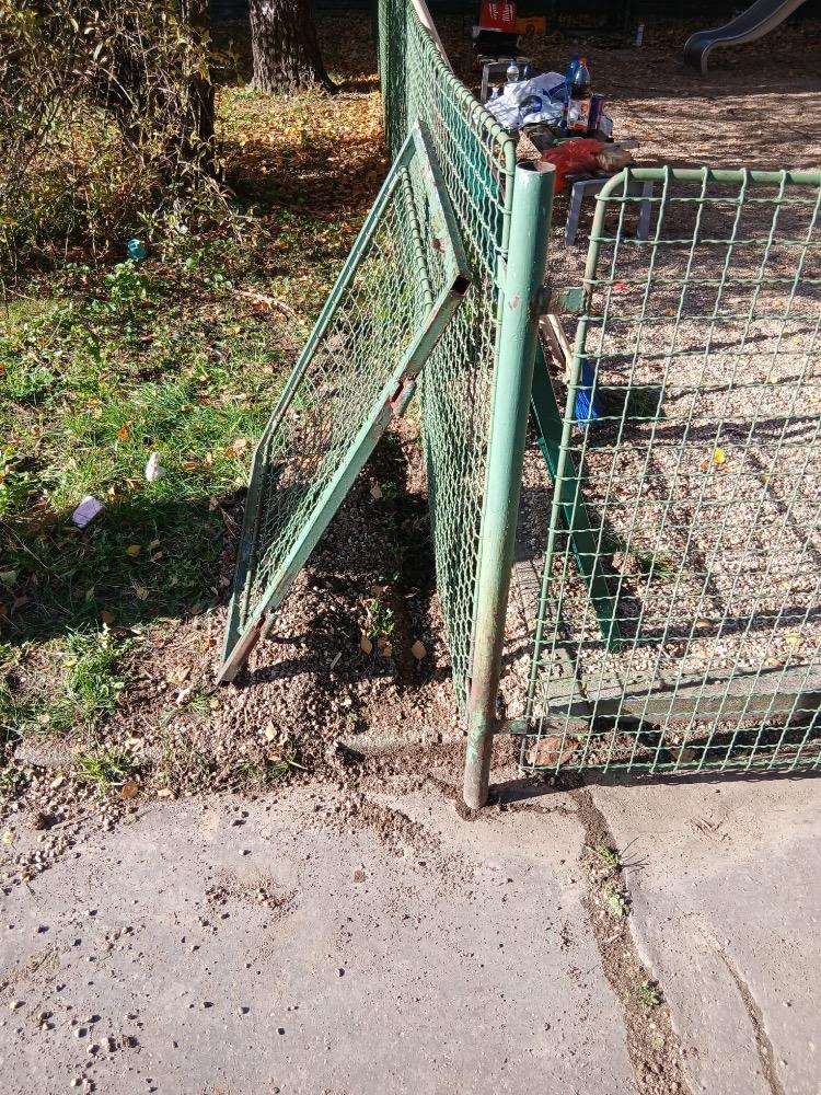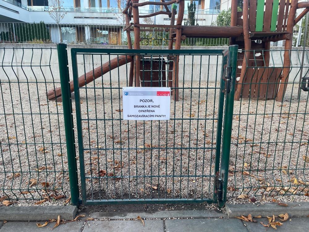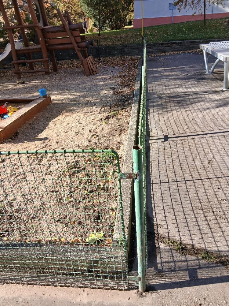 Oplocení dětského hřiště bylo odborným zámečníkem opraveno, vyrovnáno, zbroušeno a poté 2 x natřeno. Dále byla instalována branka se samozavíracími panty.