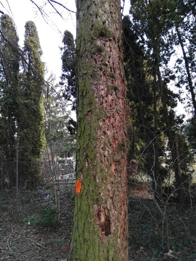 13. Picea pungens (smrk pichlavý) - 2 ks - ul. Hlavní - neperspektivní, občany poničené stromy