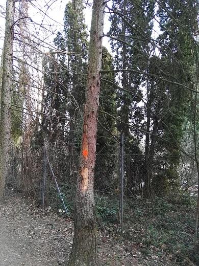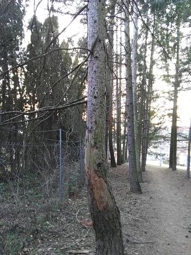 4. Larix decidua (modřín opadavý) - 9 ks - ul. Řezáčova (lesík u hřbitova) - kůrovec, suché