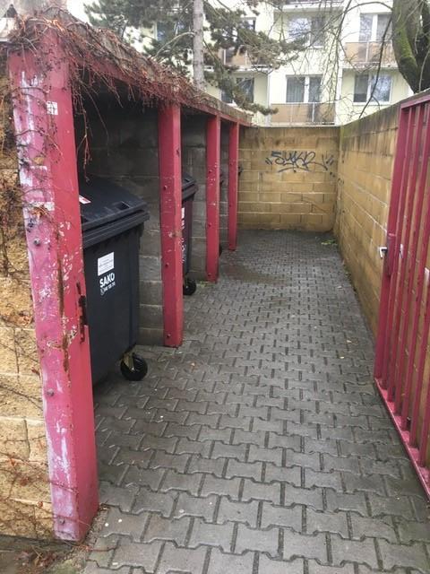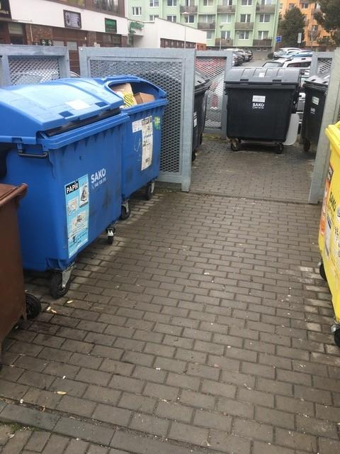 Na ulici Řezáčova bylo vyčištěno 18 kontejnerových stání na směsný a tříděný odpad.
