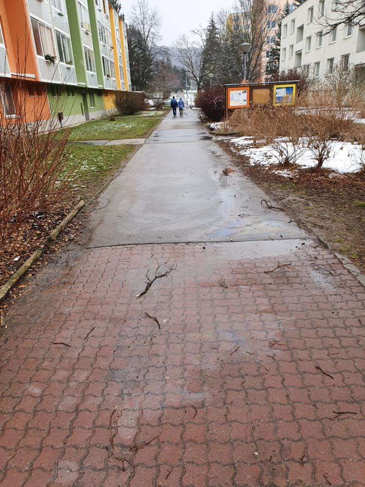 Oprava chodníku v proluce Absolonova - úsek mezi ulicemi Hlavní a Absolonova (2021)