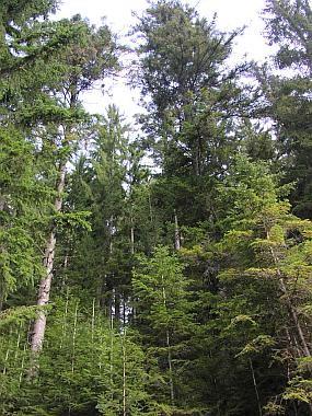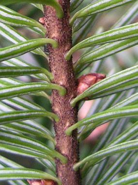 Velký strom s plnodřevným válcovitým kmenem, kuželovitou až válcovitou velmi pravidelnou korunou. Ve vysokém věku boční větve přerůstají terminál a na vrcholu koruny vzniká tzv. „čapí hnízdo“. Dorůstá 30-60 m do výšky a 1-2 m do průměru kmene. Kořen kůlový až srdcovitý s hluboko sahajícími panohovými upevňovacími kořeny.