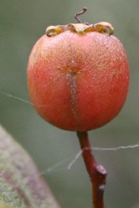 Je to keř až malý strom od 2 do 10 m, habitus variabilní, nejčastěji kulovitý, obráceně vejčitý. Listy na plodonosných brachyblastech vejčité až kosočtverečné, s klínovitě sbíhavou bází.