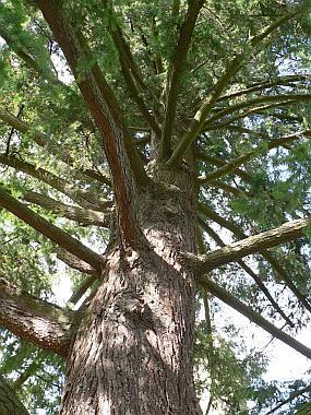 Vysoký až velmi vysoký strom, v pralesích dorůstá 55-100 m výšky a 1–3 m v průměru. Koruna zprvu kuželovitá, ve stáří zaokrouhlená, nahoře nepravidelně zploštělá. Kmen dlouhý, válcovitý, u starších stromů přirozeně vyvětvený. Borka u mladých jedinců hladká s pryskyřičnými puchýřky, u starých stromů korkovitá, silně rozbrázděná v silné podélné červenohnědé hřebeny, oddělené hlubokými prasklinami. Tloušťka kůry může dosahovat 15-30 cm i více.