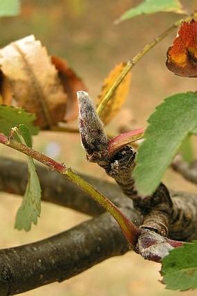 Strom, řidčeji keř vysoký 3-12(-15) m. Borka světle šedá. Pupeny, spodní strana lístků, listové vřeteno a větve květenství plstnaté. Pupeny vejcovité, špičaté.