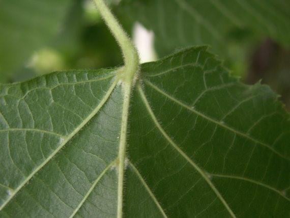 Strom, 20-35(-40) m vysoký, s válcovitým a ve stáří často mohutným a vykotlaným kmenem. Borka zůstává dlouho hladká a šedá, ve stáří pak podélně praská. Pupeny jsou vejcovité, tupé a 3-7 mm dlouhé. Střídavé listy jsou mírně asymetrické. Srdčitá čepel je 7-12 cm dlouhá, na svrchní straně matně zelená, na rubu po celé ploše odstále pýřitá.