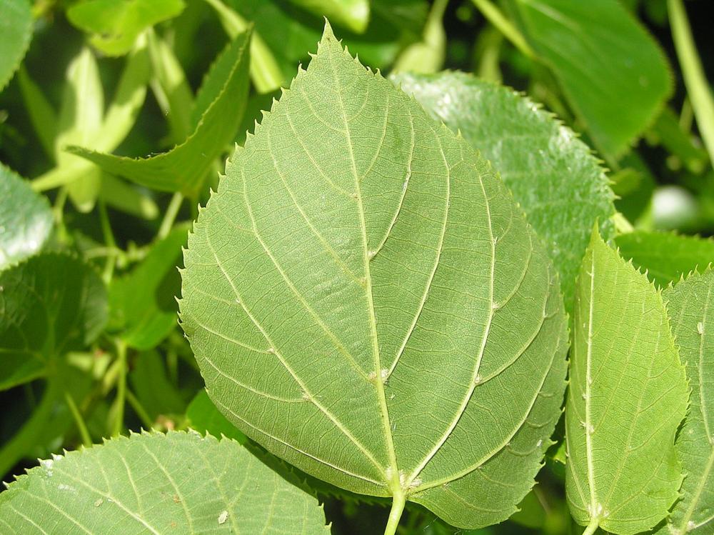 Opadavý listnatý strom dorůstající výšek 15-25 m. Letorosty jsou lysé, žlutozelené, jen svrchu někdy slabě načervenalé nebo nahnědlé. Strom je nápadný převislými větvemi, zvláště v dolní části koruny. Čepel listů je svrchu tmavě a zespodu světle zelená, kromě paždí žilek na rubu lysá. Horní strana listů je nápadně lesklá.