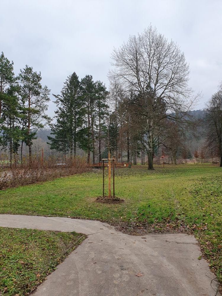 Výsadba 3 ks višně chloupkaté (Prunus subhirtella "Pendula") za některé nekvalitní stromy z výsadeb v roce 2017.