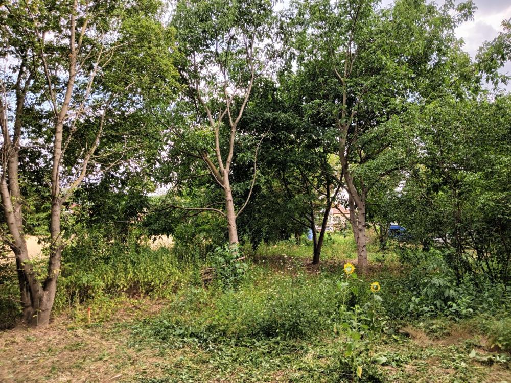 1 ks třešeň ptačí (Prunus avium), 13 ks slivoň myrobalán (Prunus cerasifera), 1 ks olše lepkavá (Alnus glutinosa), 2 ks jasan ztepilý (Fraxinus excelsior), 2 ks habr obecný (Carpinus betulus), 16 ks trnovník akát (Robinia pseudoacacia), 17 ks ořešák královský (Juglans regia), 2 ks javor babyka (Acer campestre), 5 ks javor mléč (Acer platanoides), 36 ks javor klen (Acer pseudoplatanus), 16 ks javor jasanolistý (Acer negundo), líska obecná (Corylus avellana), šeřík obecný (Syringa vulgaris), svída krvavá (Cornus sanguinea), bez černý (Sambucus nigra).