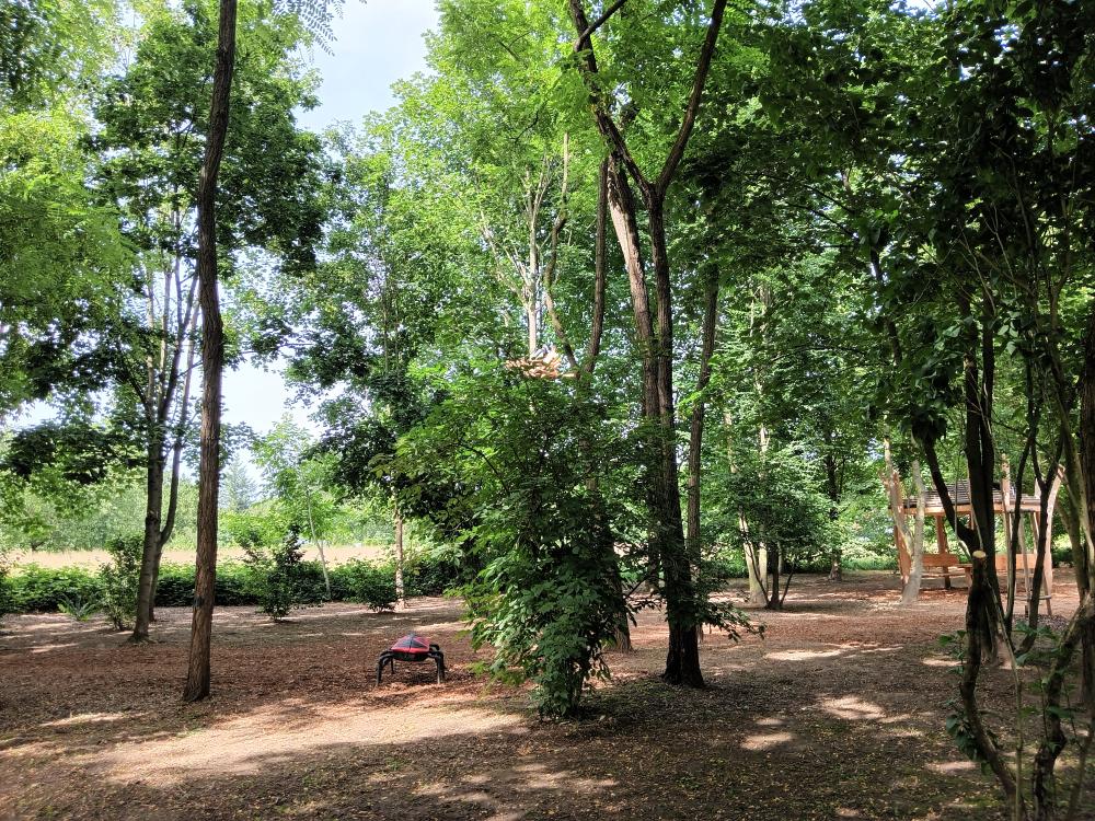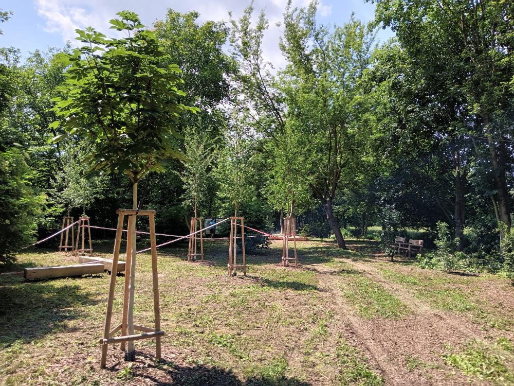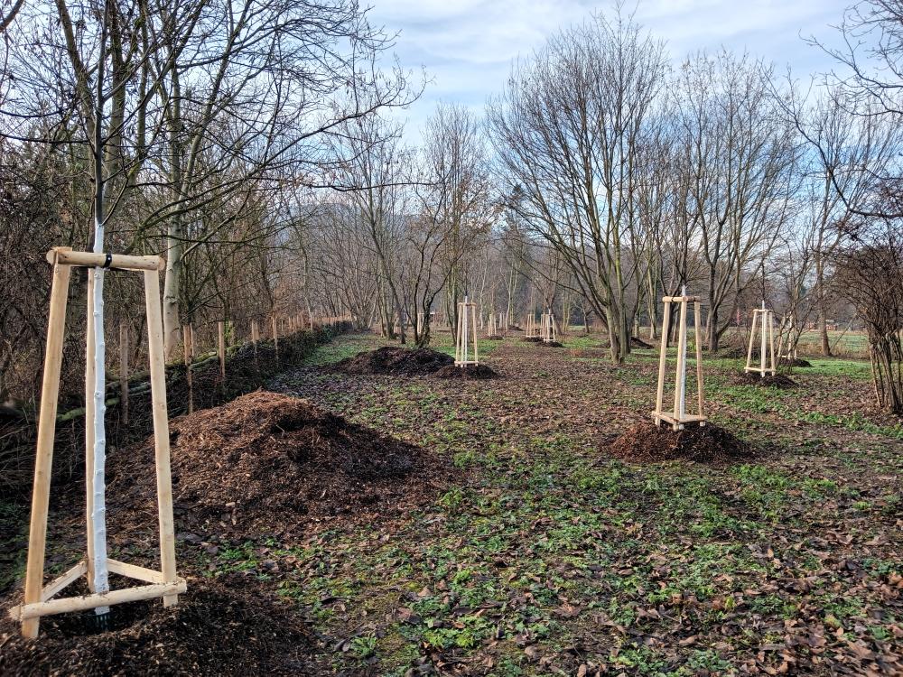 Stromy: 2x lípa srdčitá (Tilia cordata), 2x dub cer (Quercus cerris), 5x bříza bílá (Betula pendula), 2x třešeň ptačí (Prunus avium), 2x jírovec maďal (Aesculus hippocastanum), 1x olše šedá (Alnus incana), 1x olše lepkava (Alnus glutinosa), 3x kaštanovník setý (Castanea sativa)